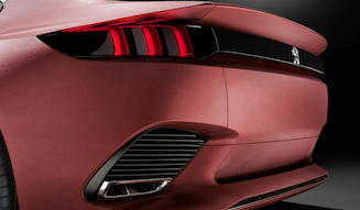 先日お伝えしたとおりこのイグザルトは、金属を無垢の状態にしたパートと、鮫肌のようなマテリアル加工がほどこされたCピラー以降(赤色の部分)のパートの2つで構成されたユニークなボディを持つ。このソリッドなボディの表面処理は、1920~1930年代に製造されたフランス車へのオマージュであり、長い自動車製造の歴史への情熱を表現したとプジョーは謳う。