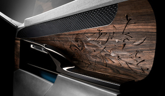 シートは、エイジドレザー、カーボン、そして天然ウールをベースにしたデシン織りの新素材を組み合わせたバケットタイプのものが採用され、中国の伝統とフランスのモダンが融合した新感覚のキャビンに仕上げられた。