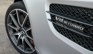 エンジンは、“M159”と呼ばれたドライサンプ方式を採用する6.2リッターのV8 NAエンジンを搭載していたSLS AMGにたいし、AMG GTではAMGが専用新開発した“M178”が搭載される。このエンジンは、ゼロから開発されたもので、ダイレクト インジェクションの4.0リッターV8ツインターボ。シリンダーバンクの挟角に2基のターボチャージャーが取り付けられるという特殊なレイアウトになっている。