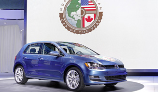「2015年初頭は(モータートレンド誌による米国の)カーオブザイヤーをゴルフとゴルフGTEとで取得できたことがとても嬉しい」。フォルクスワーゲングループのドクター・マルティン・ウィンターコルン取締役は、会場に集まったプレスの前でそう語った。同社のブースに並べられたゴルフのボンネットには受賞記念のステッカーが誇らしげに張られていた。