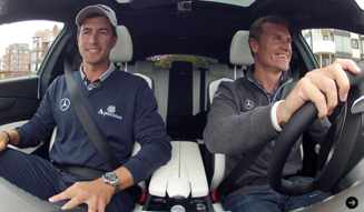 そういって、オーストラリアはアデレード出身のプロゴルファー アダム・スコットのゴルフバッグをクルマに積み込むのは、なんと元F1ドライバー デビッド・クルサード。先日発表されたばかりの、メルセデス・ベンツ「CLS シューティングブレーク」のハイパフォーマンスバージョン「CLS 63 AMG シューティングブレーク」を駆ってのお迎えだ。