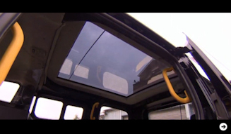 客席天井部分は巨大なグラスルーフになっており、明るく開放的な室内空間を演出、観光客にとってもうれしい装備といえそうだ。前席スペースには運転席しかなく、本来助手席がある場所は荷物の積み込みスペースになっているという。