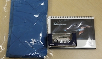 プジョー カレンダー、ダウンマフラー&ミニカーセット