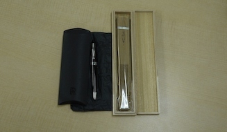 ロールス・ロイスのボールペンと扇子をセットで1名様に。ロゴ入りのボールペンには替え芯付き。扇子は木箱入りです。