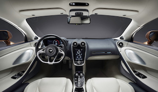 新開発のインフォテインメントシステムは、10クアッドコア チップと業界標準の「HERE」によるナビゲーション マッピングとリアルタイムの交通情報を表示するマクラーレン史上最も洗練されたもの。インターフェイスの操作はスマートフォンに似たもので、中央の7インチ タッチスクリーンを使い、衛星ナビゲーションやBluetoothでの電話通話、メディアストリーミング、音声操作などの車内機能の選択ができる。