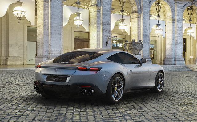 名前は「ローマ」(Roma)。流麗なスタイリングをもつグランドツアラーだ。フェラーリはこのボディ形状を「2+クーペ」と呼称している。