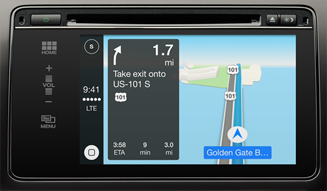 このCarPlayはマップ(iOS内蔵の地図アプリケーション)とも連動しており、連絡先やメール、テキストメッセージからも目的地の設定が可能で、経路案内、道路状況そして予想到着時刻といったGPSナビゲーションとしての役割も併せ持つ。またSiriに直接尋ねれば、クルマの液晶ディスプレイに表示されるマップとともに、音声ガイドによる案内を受けるとることもできる。