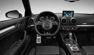 インテリアでは、印象的なステッチをトリムに採用し、炎天下でもシートの表面温度上昇を抑制する特殊な顔料を用いたレザーシートを装備する。このシートは、パールナッパレザーとファブリックのミックスをベースに、アルカンタラとパールナッパレザー、ファインナッパレザーとベルベットといった組み合わせをオプションとして用意。S3のロゴを型押ししたダイヤモンドステッチを採用したSスポーツシートを選ぶこともできる。