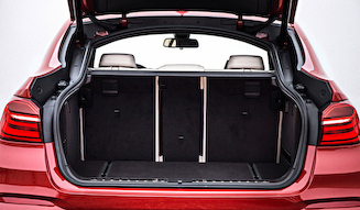 36mm車高を下げたことで、ドライバーの着座位置も20mm低いポジションにおさまっている。いっぽう、リアシートは3人掛けを可能としており、クーペライクなデザインを採用するものの、X4の乗車定員は5名のまま。40:20:40の分割可倒式リアシートバックレストを標準装備し、ラゲッジスペースの多彩なアレンジも実現した。