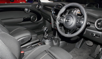 ヘッドライトは、LEDタイプのものを設定。このライトユニットには、リング状に発光するようにLEDが埋め込まれており、フロントマスクのあらたなアイコンとなっている。スポーツモデルの「クーパーS」には、先代同様に差別化されたスポーティなエクステリアが与えられており、ハニカムデザインのラジエーターグリルやエアロフロントバンパー、リアアンダースポイラーなどを採用。またクーパーSであることをしめすエンブレムが、グリルやサイド・スカットルに装着されている。