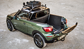 今回発表されたコンセプトモデル「ミニ ペースマン アドベンチャー」は、MINI初となるピックアップトラック仕様のモデルだ。「ミニ クーパー S ペースマン」の4WDバージョンである「ALL 4」をベースに、車高を上げて荷台を設置、ピックアップトラック仕様にカスタマイズした。クラシック ミニ時代に同様のピックアップモデルは存在したが、もちろん新世代のMINIでは初となるピックアップトラックである。