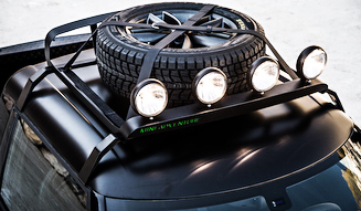 キャビンは2シーターとなり、荷物スペースや工具収納スペースをシートの後方に用意。また固定式のルーフラックには、補助灯を4基備え、同時にスペアタイヤを収容できるようになっている。こうした内外装にみられるワイルドな処理と4WDシステムは、いかにも「アドベンチャー」というネーミングにふさわしいものである。