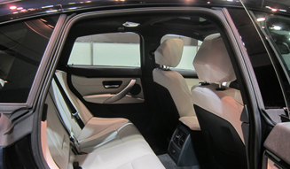「4シリーズ クーペ」でも、十分なスペースを確保していたリアシートだが、クーペモデルとくらべ全高を12mm高め、1,370mmとしたことでヘッドクリアランスを確保。同時にルーフラインも112mm後退させたことで、居住性を格段に高めたただけでなく、クーペらしいスタイルを保つことに成功している。リアシートも3人掛けとなっている。