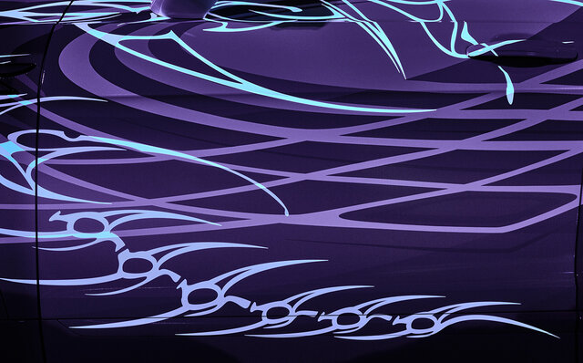 そんな彼のタトゥーの世界観が今回クルマにも描かれるように。今回ベントレーが初披露した車両は、バンバン氏が2023年に発表した特定の光でタトゥーを自在に消したり戻したりすることが可能な革新的なインク「Magic Ink」を使用したデザインで、クルマでも“オン”と“オフ”が楽しめるものとなった。