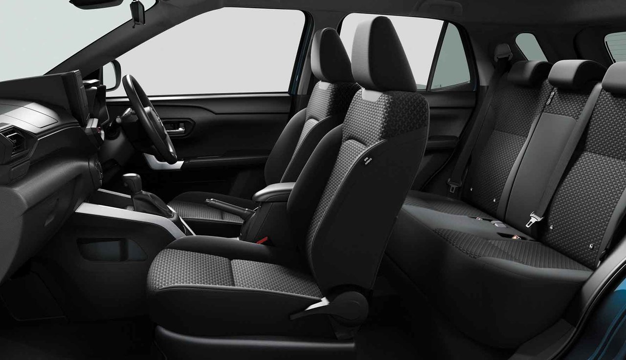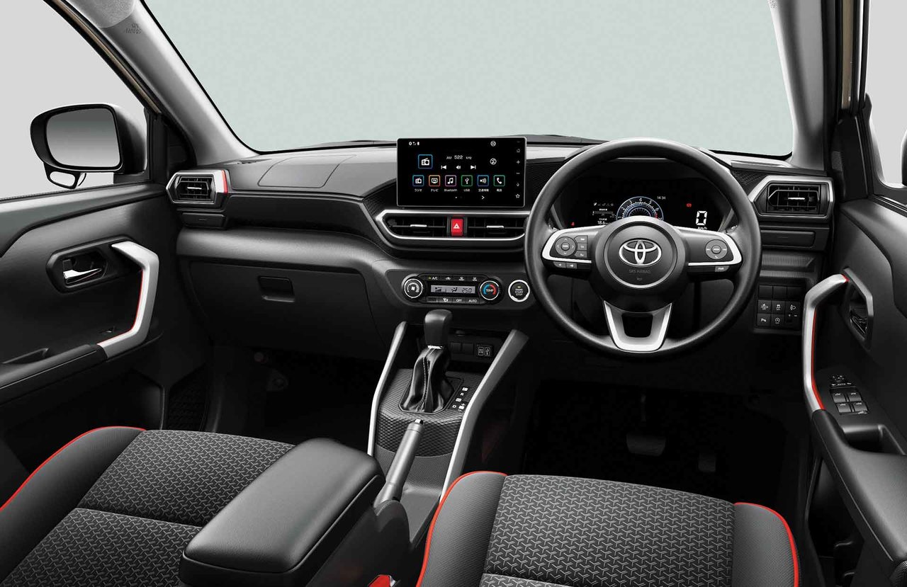 インテリアは随所にシルバーや赤のアクセントカラーを配置し、上質感や遊び心が与えられたほか、LEDデジタルスピードメーターと7インチTFTカラー液晶ディスプレイをシームレスに表示することで、フルスクリーンのような先進感を表現。オプションではスマートフォンと連携する9インチディスプレイオーディオも取り入れられた。