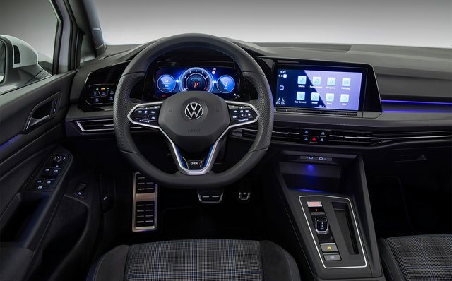 インテリアは、3本シルバースポークステアリングホイールや、タータンチェック柄のスポーツシート、ゴルフボール型のブラックギアノブなどが伝統を引き継ぐ一方、10.25インチのデジタルコックピットと10インチナビゲーションシステムを組み合わせた「innovision Cockpit(イノビジョン コックピット)」と呼ばれるデジタルアーキテクチャーを搭載し、視覚と機能を一新している。
