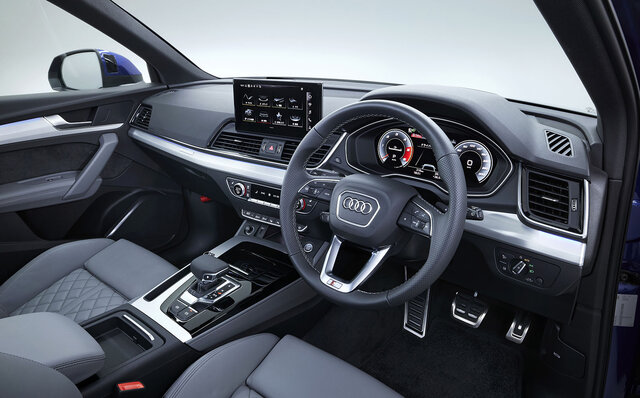 インテリアでは今春モデルチェンジしたQ5同様の最新のインフォテインメントシステムMIB3を採用。10.1インチにサイズアップしたタッチパネル式のセンタースクリーンにより操作性が向上し、またシンプルでクリーンなコックピットデザインを実現している。ネットワーク接続は、物理的なSIMカードではなく、eSIMを用いる仕様だ。