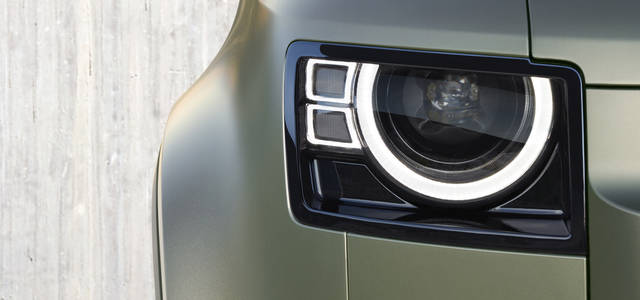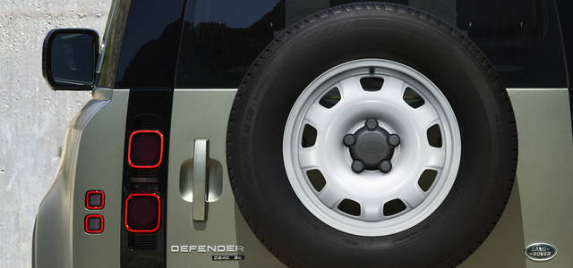 エクステリアは、短い前後のオーバーハングにより、優れたアプローチアングルとディパーチャーアングルを有したデザインを採用。専用の直立フォルム、ルーフ後方の「アルパインライト」ウインドウ、横開きのテールゲート、外付けスペアタイヤなど、一目でディフェンダーと分かるシルエットに仕上げられた。