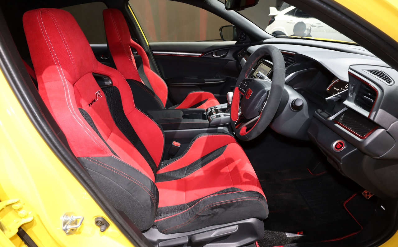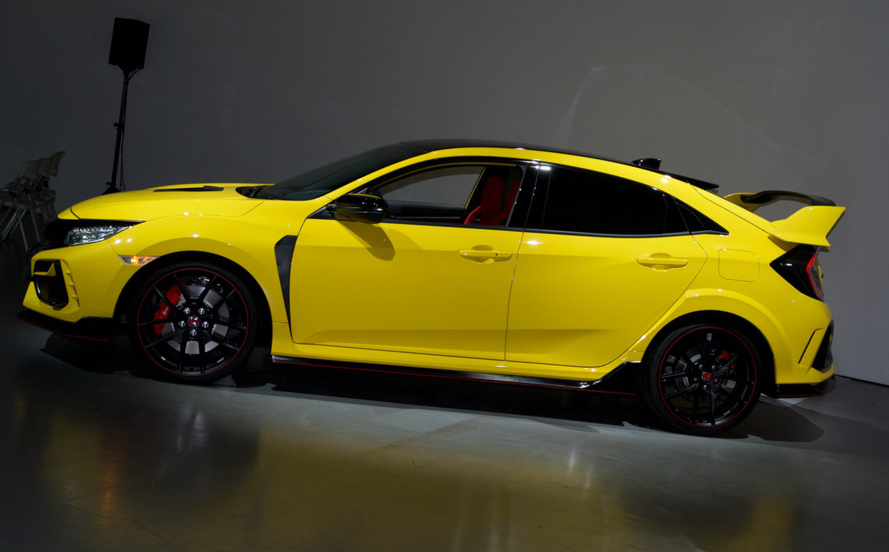 外装は90年代のタイプRを彷彿するサンライトイエローⅡに塗られ、ブラックのルーフ、ドアミラーキャップ、ボンネットインテークカバー、販売先の各国名を刻んだシリアルナンバープレートを装着した。