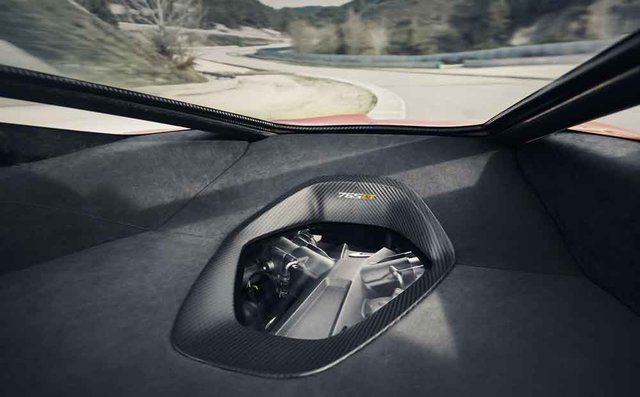 ベースとなる「720S」に対し、高性能化および80kgの軽量化が図られた同モデル。パワーユニットは最高出力で45ps、最大トルクで30Nm増強し、765ps、800Nmを発生する。また、サーキット対応のサスペンションや、インギア加速が15%速められたトランスミッションも与えられた。