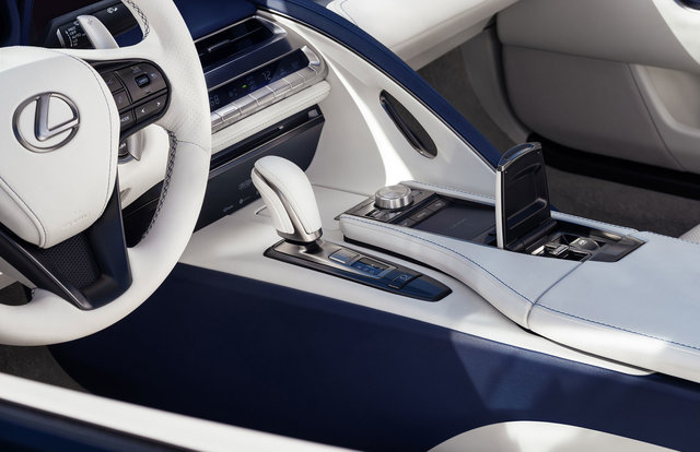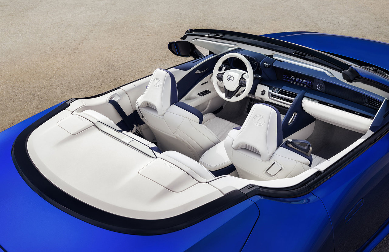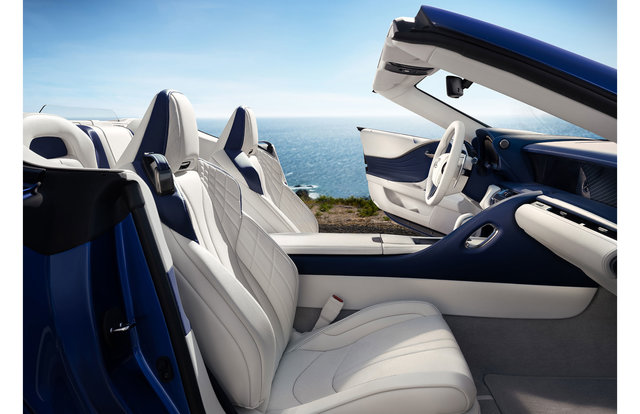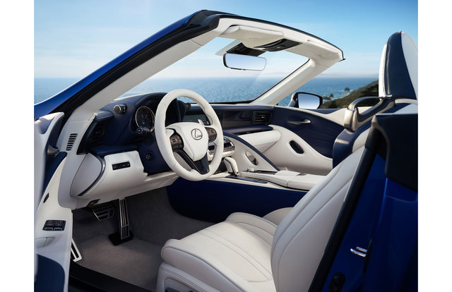 パワートレインは、LCと同じ5.0リッターV8エンジンと10段ATの組み合わせで、伸び感のあるリニアな加速を演出。自然吸気NAエンジンの官能的なサウンドをコンバーチブルで楽しむため、吸気音をキャビン内に共鳴させるサウンドジェネレーターや、より迫力のある排気音を演出する外装バルブを採用し、ルーフオープン時のより気持ち良いサウンドが作りこまれた。