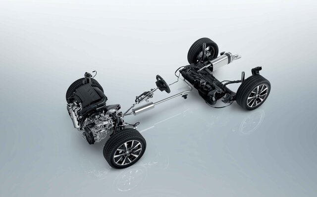 SUV 2008にはグループPSA最新のコンパクトプラットフォーム「CMP」が用いられ、先代モデルに比べ、ボンネットが低く長く、よりタイヤが四隅に配置された安定したスタンスを持つプロポーションを実現したという。