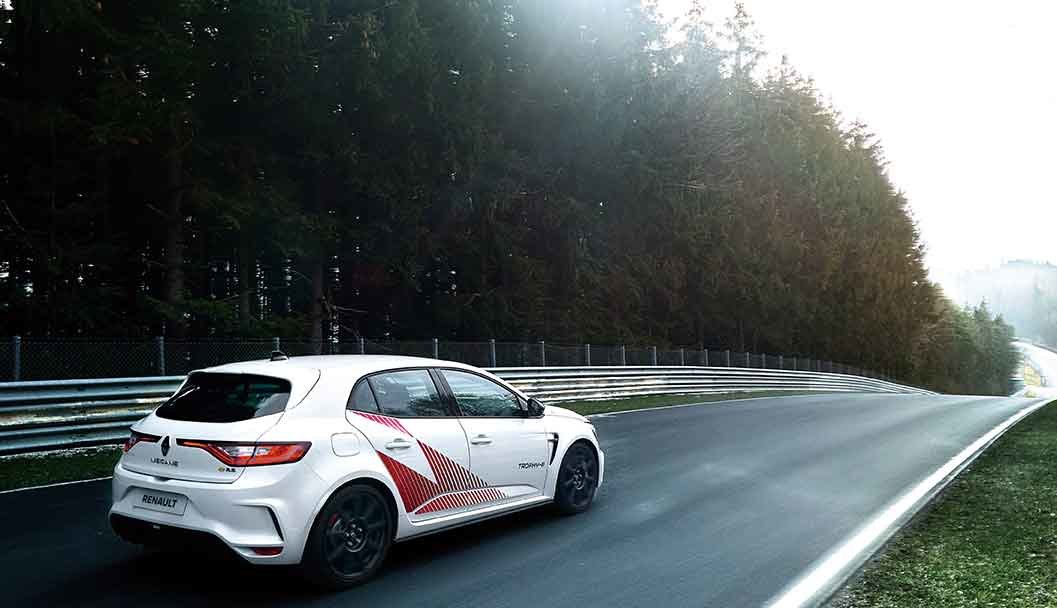 2019年4月にニュルブルクリンク北コースで量産FF車最速となる7分40秒100を記録したメガーヌR.S.トロフィーR。