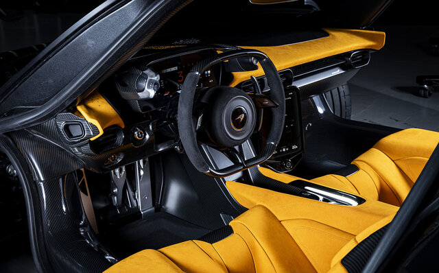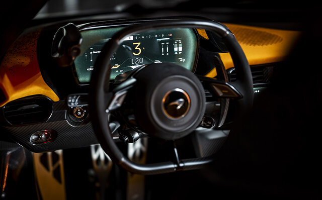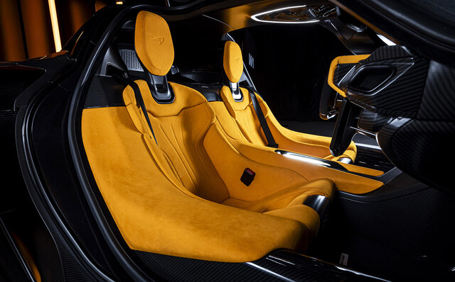 8段トランスミッションを介し、マクラーレンのトレードマークである後輪駆動が採用され、公道走行可能なモデルでありながら0-100㎞/h加速は2.7秒を記録。これはマクラーレン史上最速となり、最高時速は350㎞で電子的に制限される仕組みだ。
