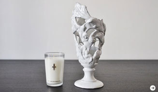 フランスの旧家アスティエ・ドゥ・ヴィラット家のひとりとして、長年ブランドのクリエイションに携わり、あらたに自身の名を冠したブランドを立ち上げたマチルダ・キャロン。白い釉薬とその下にかすかに透けて見える黒い土とのコントラストが多彩な表情を見せる彼女の作品は、ひとの手により、ひとつひとつ丁寧につくられ、その細やかでぬくもりのあるフォルムはまるで彫刻作品のよう。