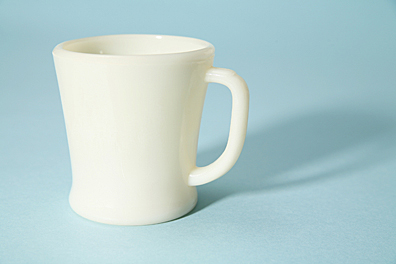 そしてその店にポツリと置いてあったのが、ファイヤーキングのDハンドルマグだったのです。それまで陶器の質感しか知らなかった私が、「ミルクガラス」と呼ばれる独特の透明感をもったテーブルウェアに出合ってしまった、最初の瞬間でした。