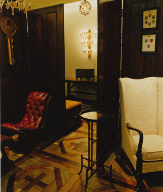 インテリアデザインは、英国人デザイナーのマイケル・バーナード氏。ゴシックスタイルの重厚な家具やフラッグが飾られ、石の天板をもつテーブルが置かれた部屋。シャンデリアが彩る20世紀初頭フランスのアイアンベッドのある部屋……。