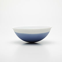 日本においても、カップのエッジに釉薬をぐるっと装飾したいわゆる「皮くじら」と呼ばれる作品を見かけるが、このピエト・ストックマンの作品はそれが青い釉薬でほどこされている。