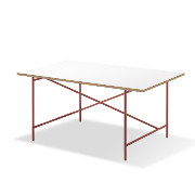 建築家 エゴン・アイアーマンが自身のアトリエ用にデザインした「アイアーマンテーブル」。スチールのフレームに天板を乗せたシンプルな構造で、普遍的な名作と呼ばれている。この製作権を得たリチャード・ランパート社は1995年、ディティールはそのままに、ノックダウンできるよう現代的仕様をくわえ復刻。更にこの秋、新色と新仕様が登場。色は新たにレッド、グレーが登場する。天板は水に強く、手入れのしやすいメラミン化粧版を採用、木口にはオークの無垢材がほどこされ、細部にまでこだわりが感じられる。9万5000円(税抜)~