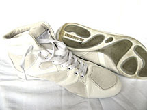「muji」まったく通気性の良くないもう一足。でも40ドルだ。なにも文句は言えない