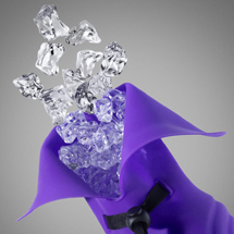 そんなイタレッセの今年の注目アイテムはIcesac。実はその名の通り氷を入れて使うものなのだが、ユニークなのはそのまま氷を砕けてしまうという点。シリコンでできたボディに氷をつめ、リボンをきゅっと締める。そしてそのままキッチンテーブルやカウンターに打ち付けると、中の氷は一瞬で粉々に。アイスピックを使って氷を砕くなんて面倒な作業をせずに、カクテルやドリンクに必要な細かい氷を用意することができる。ストレッチがきいて柔軟性があり、気軽に持ち運べるのでアウトドアにも最適。また、自立し、一輪ざしとしても使えるというマルチユースな商品だ。