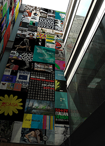 これまでにアルマーニやフェラガモ、アレッシィ、カッシーナをはじめ、多くのブランドでアートディレクションやグラフィックを手がけてきたクリストフ・ラドル氏。ミーレ・センター表参道の4階吹き抜けの中庭空間に、1980年代からの作品約280点をコラージュした「ラドル・ウォール」を日本ではじめてつくりあげる。