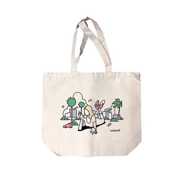 たばこ文化をポップに伝えたいという想いから生まれたオリジナルグッズは、イラストレーターやグラフィックデザイナーとのコラボレーションにより誕生。第一弾はイラストレーターの金安亮氏によるイラストがプリントされたロングスリーブTシャツとトートバッグをラインナップした。