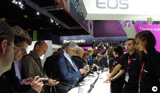 特にキヤノンの「EOS M」コーナーはいつも盛況。また、ペンタックスリコーブースのQ10のコーナーでは、立ち止まってじっくり吟味する女性の姿が印象的だった。