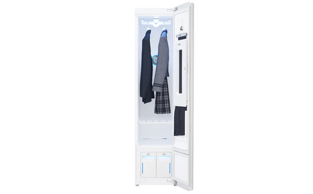 自宅で衣服を簡単にケアできる「LG styler」。スチームの力で、衣服についてホコリやウイルス、ニオイを除去。乾燥機能なども付属し、高い機能性を備えた家電だ。