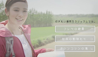 途中で筧さんとの旅の行き先を「フレペの絶景(フレペの滝)」、「知床の動物たち(知床国立公園)」、「オシンコシンの滝」の中から選ぶことができる。