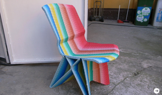 例を挙げるとすれば、ロッザンナ・オルランディーでも展示されていた、Dirk van der Kooijの椅子だ。素材となっているのはペレット状のリサイクルプラスチックを溶解させたもの。それを大きな黄色いロボットがプログラミングに従って絞り出し、何層にも重ねて形を作っていく。型を必要とせずに3次元の立体物を自由に成形できるラピッドプロトタイピングの技術を応用しているらしいが、完成した形状や色彩が何とも言えず、オブジェとしても魅力的であることに感動した。