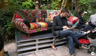 ほかにも、33個の鳥の巣を大きなプラモデルのような造形にまとめた《Bird City》と題されたEveline Visserのデザインなど、とにかく見所が多かった。会場内には実演販売さながらにスタッフがサンドウィッチなどの軽食を作って販売する特設キッチンや、それらを買って食べられるカフェや読書スペースなどもあり、来場者がリラックスしながら先端のデザインに触れられる環境が作られている点もよかった。