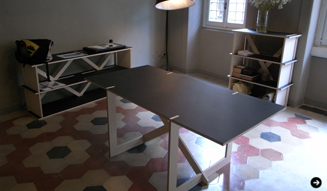 Colin Schaelli スイスの若手デザイナー、コリン・シェーリーの、ネジや釘などを一切使用しない合板製の組み立て式家具シリーズ「con.temporary funiture」。イタリアでは初の展示となる。