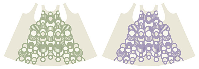 丸と直線だけで構成される独特の柄。今回は、さまざまなキッチンアイテムがおなじ生地からつくられるため、それぞれのアイテムの大きさを考慮し、柄の出方を想定したデザイン。色にも細心の注意を払い、山形のプリント工場までご一緒させていただきました。何度も試作を重ね、現地でも直前まで色調整を行い、顔料と染料、手仕事と機械を使い分けながら実際にかたちになった瞬間の感慨深さは言葉になりません。