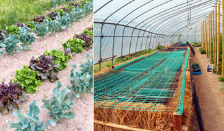 たとえば、苗を育てたり、発芽をさせるための苗床は、「踏み込み温床」を使って作られる。これは、落ち葉や米ぬか、わら、牛糞などを何層にも重ねてベッド状にしたものであるが、発酵熱の暖かさが厳寒期の発芽を可能にする。またこの栄養豊かな土壌は2年寝かせて苗土になるという。電気やガスをまったく使わずに熱を作り出し、その熱で作られたものは、また豊かな土壌に戻っていく。