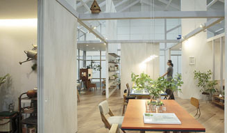 引戸を自在に使い分けることによって、ここ数年増加する在宅勤務やSOHO化にも柔軟に対応。女性が自宅で自営業を営む「サロネーゼ」の増加など、あたらしいライフスタイルを反映する仕組みを提示した。