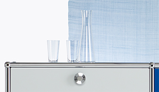 今回、これらの作品とともに展示されているのが、「松徳硝子」のうすはりグラスだ。職人がひとつひとつ丁寧に作り出す厚さ1mmの硝子は、繊細な美しさをもち、日本の夏を演出するあらたな定番。USMモジュラーファニチャーショールームはこれらの作品とともに、夏のインテリアを涼やかに演出する。