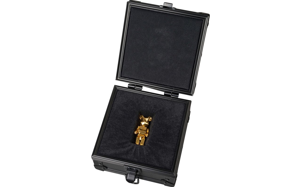 熟練の技をいかした金工芸品を世に送ることで貴金属界の確立に貢献した田中貴金属とのコラボレーションによる「BE@RBRICK fragment K24」。本商品には保管用にサンダーロゴの入った特製ケースが付属する。