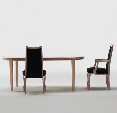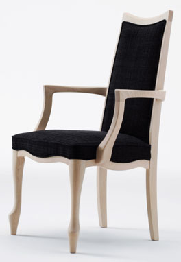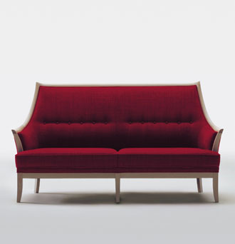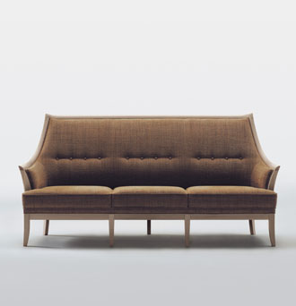マルニ木工の定番商品である「地中海シリーズ」と「ベルサイユシリーズ」を現代的にリファインしたモデル。ヨーロッパの伝統的な装飾を生かしながら、脚のディテールを単純化し、全体のサイズを変更。それに調和するモダンな色と織りのファブリックを張っている。