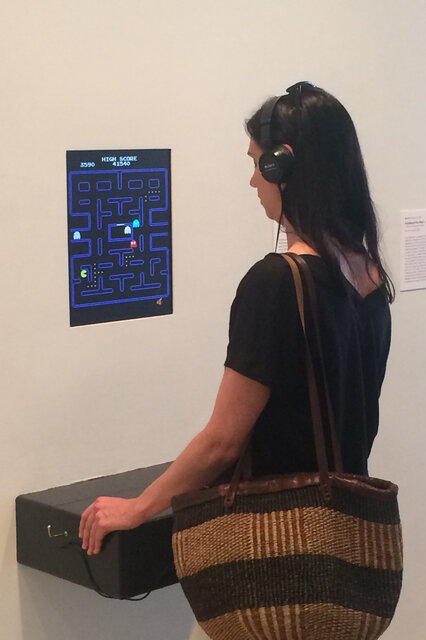 ニューヨーク近代美術館(MoMA)の常設展示は、キュレーターの方が絵画などと違って「プレイ可能な状態での展示こそがゲームの正しい展示方法である」とゲームの本質を理解されての展示が素晴らしいです。これは2015年に現地に行った時に撮った写真ですが、プレイしている手元が写っていないのが素人だなと反省しています。
